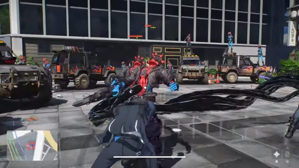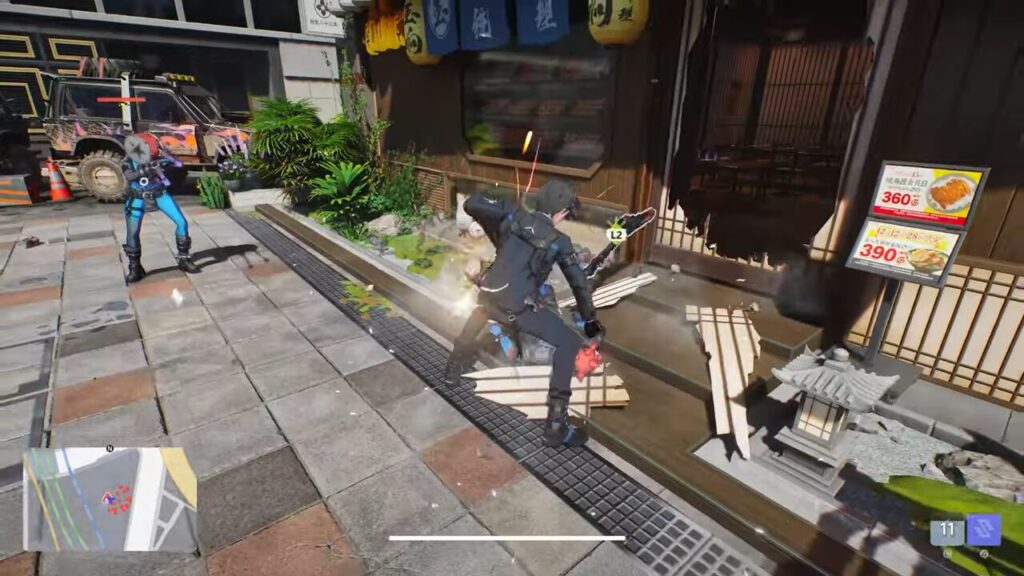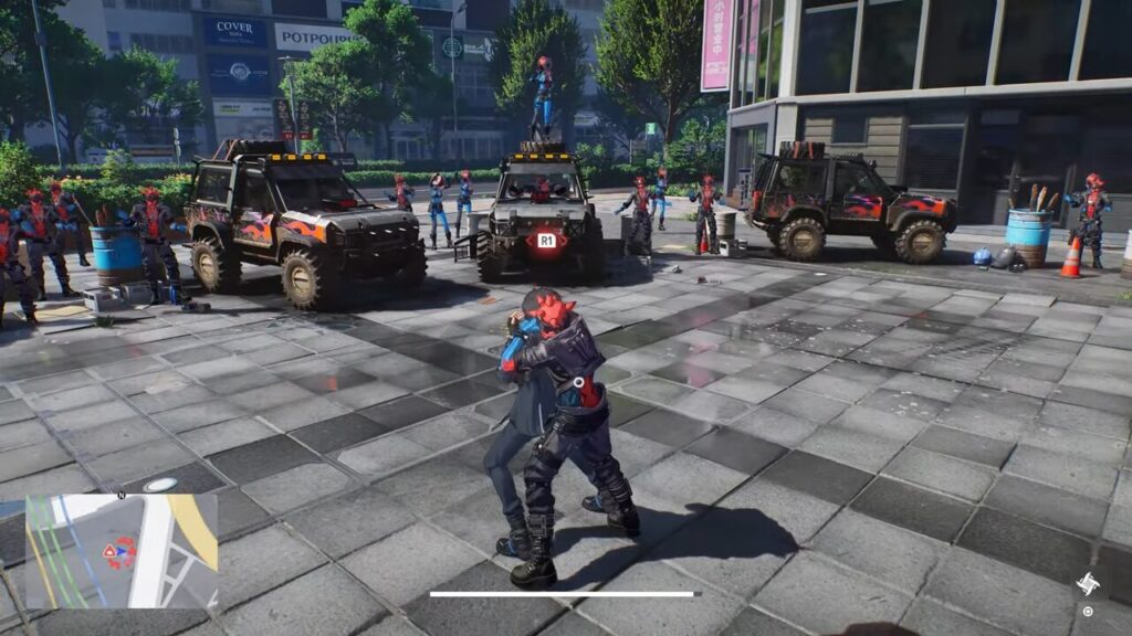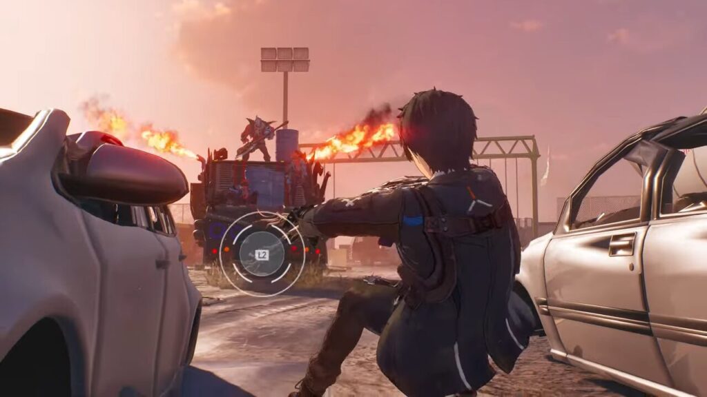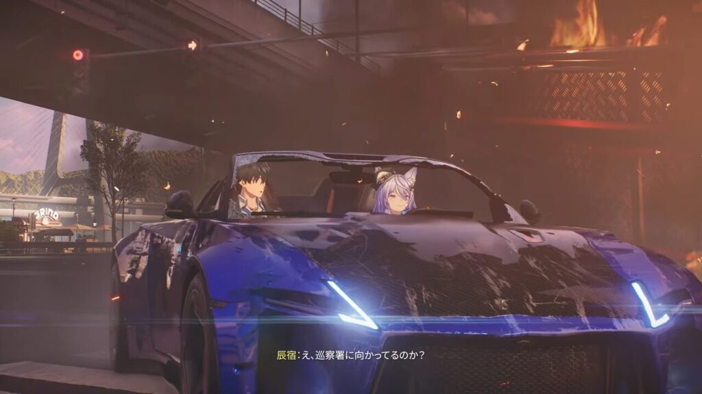 ここ車に乗った状況での銃撃戦なんですが、銃で撃ったガラス部分にヒビが入れたり、タイヤに当ててバーストできたりと判定にも種類が多く銃撃戦でもかなり攻撃の幅が広いです。