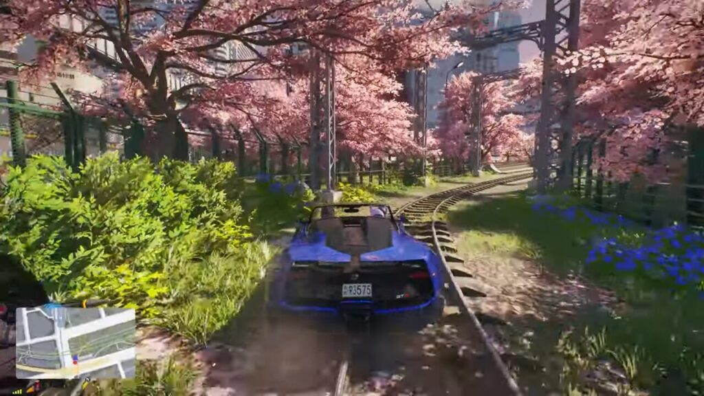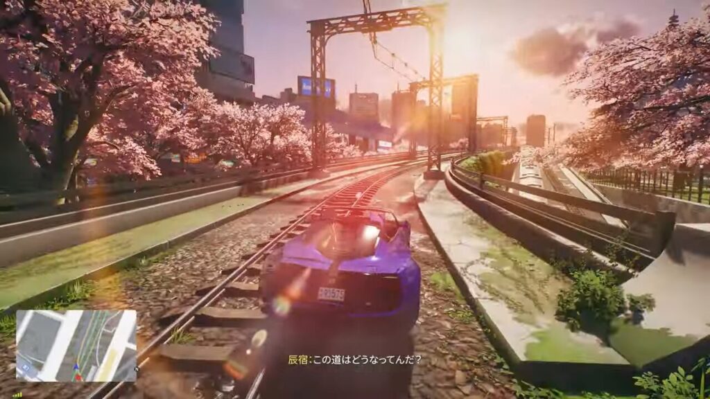 このサクラと路線、そして生えている植物のグラフィックの凄さよ。