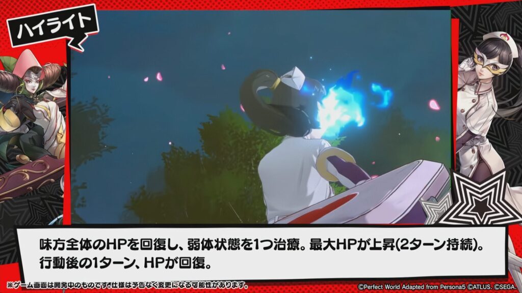 回復と同時に状態異常を解除し、火力の維持が可能であり、例え敵の攻撃力が上がろうとハイライトをHPが半分切ったところで使ってやると行動順で回復するので実質耐久になるのよね。